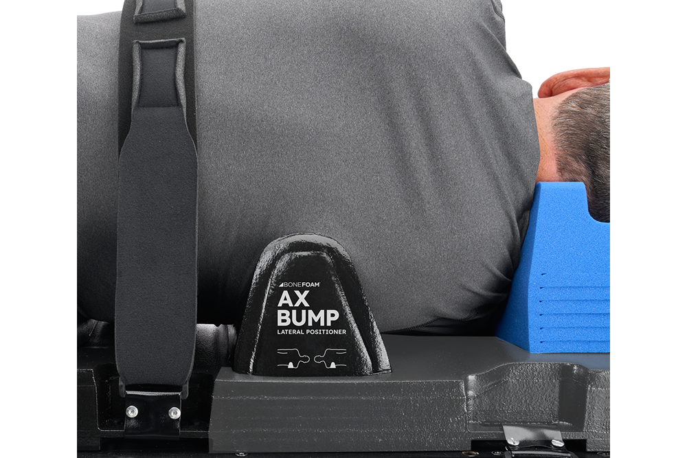 Reduces variability of using towel rolls. The BoneFoam axillary bump supports the patient in the lateral decubitus position, offloading pressure on the independent-side axilla. The novel design has a more-prominent bump on the dorsal (posterior) side, stabilizing the patient from rolling backward. The BoneFoam Ax Bump aligns with AORN positioning guidelines to help improve patient safety.